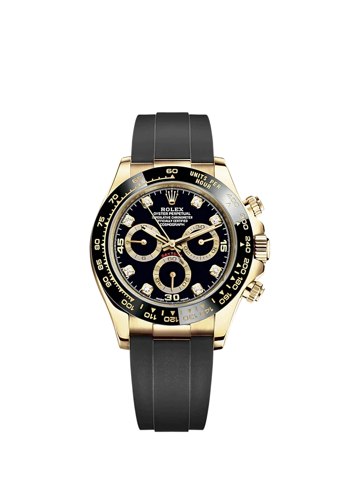 Featuring a black, diamond-set dial with snailed counters, 18 kt gold applique hour markers and hands with a Chromalight display – a luminescent material that is highly visible – this model exudes quality.